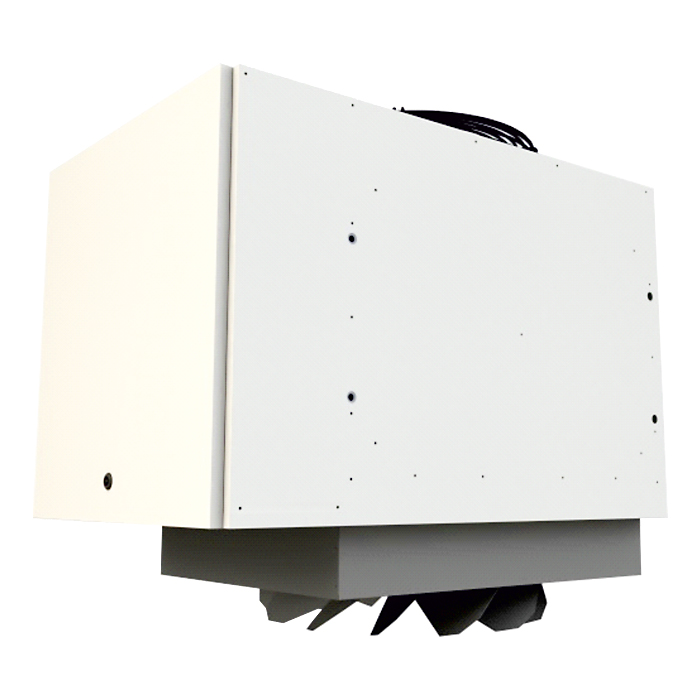 Особенности: вертикальная установка внутри помещения, функция отопления и дестратификации, осевой вентилятор, двойные жалюзи или специальная насадка – дестратификатор, трубчатый теплообменник, горелка и вентилятор дымоудаления, корпус из оцинкованной стали, пульт управления с встроенным термостатом, управляющая автоматика (контроль горения), защита от перегрева и пр., монтажный кронштейн (опция), комплект дымоходов (опция), КПД газового теплообменника до 91%.